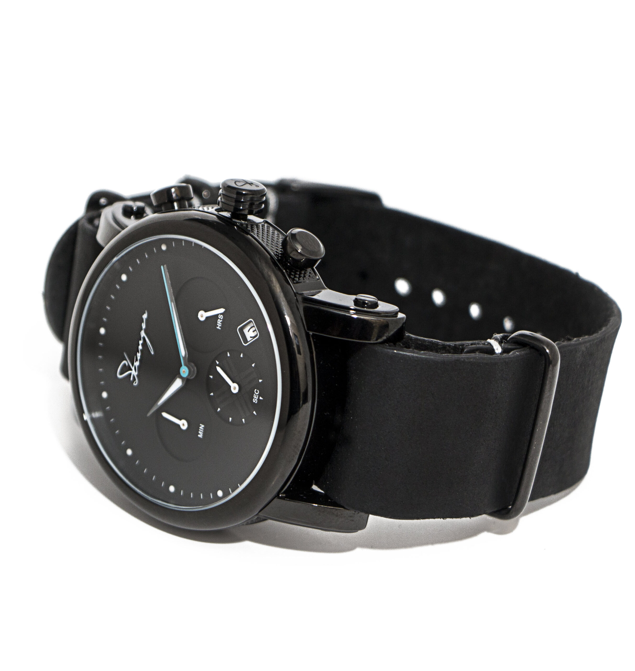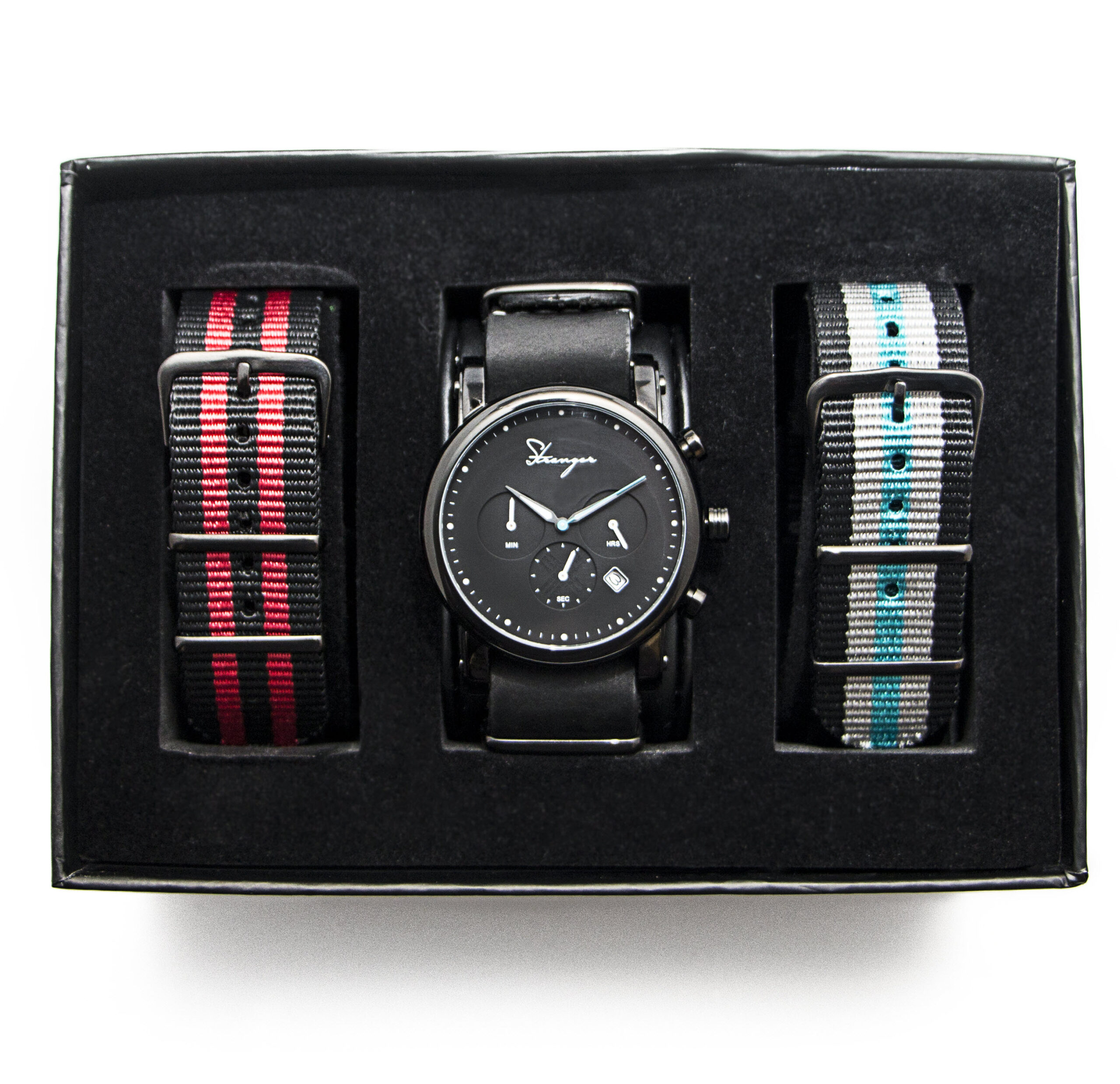 Mínimo Black Model is the definition of confidence. Elegantly packaged with 2 extra heavy nylon Nato straps in varying colors make this an ultimate accessory for both Men and Women.